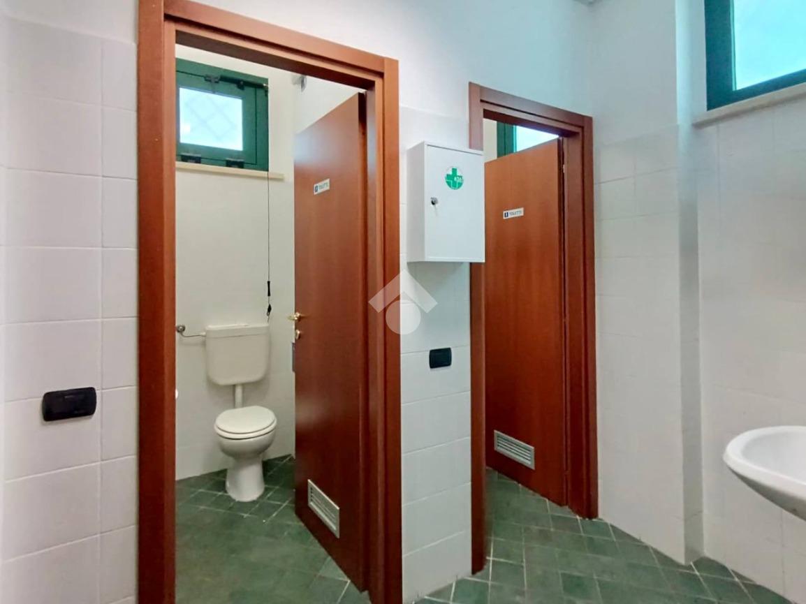 Il locale è dotato di impianto di climatizzazione caldo/freddo con split, che assicura comfort in ogni stagione, e dispone di tre bagni, di cui uno a norma per persone con disabilità.