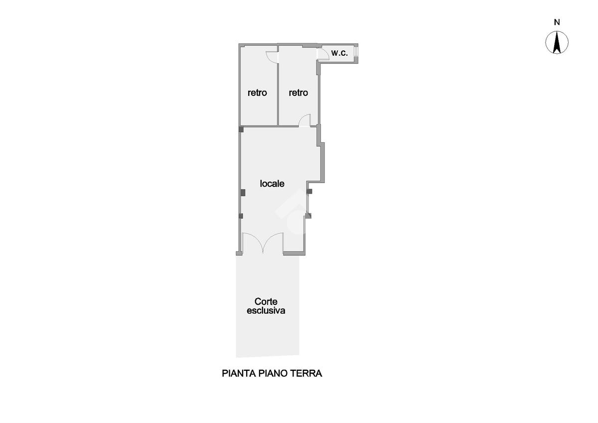 Il locale è dotato di bagno e corte esterna privata con portico, uno spazio tranquillo e riservato che può essere sfruttato come area di servizio, punto di appoggio o semplice estensione dell’ambiente lavorativo.