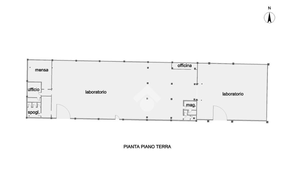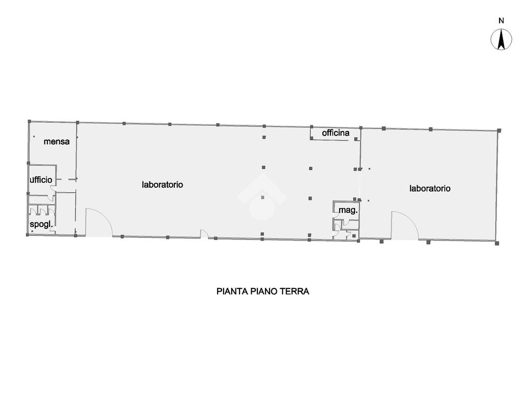 La struttura è completata da ambienti funzionali che rendono l’immobile pronto ad accogliere diverse tipologie di attività, tra cui officina, magazzino e ufficio, oltre a spazi dedicati al personale con area mensa, spogliatoi e servizi igienici.