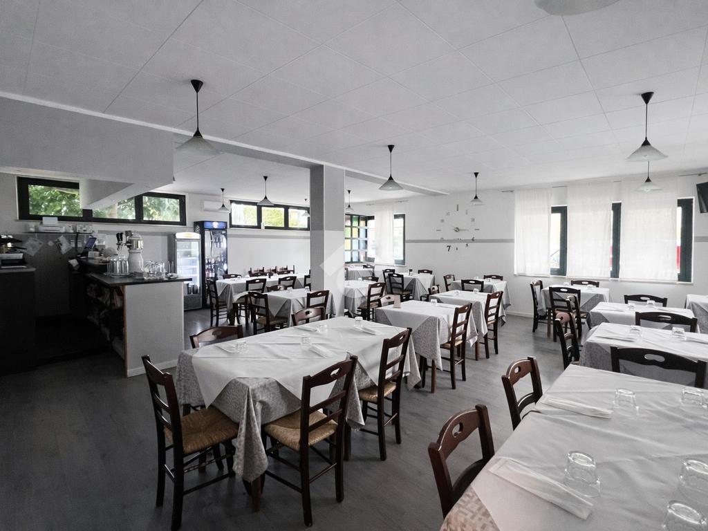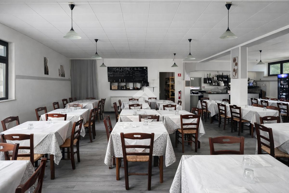 L’immobile si presenta funzionale e ben organizzato negli spazi interni, con una ampia sala principale dedicata alla clientela, ambienti di servizio ben distribuiti e una cucina operativa collegata alla zona di preparazione. Il locale dispone inoltre di servizi igienici per la clientela, tra cui uno conforme alla normativa per persone con disabilità, oltre a un disimpegno e a un bagno riservato al personale, garantendo così una gestione pratica e conforme alle esigenze di un’attività di ristorazione.