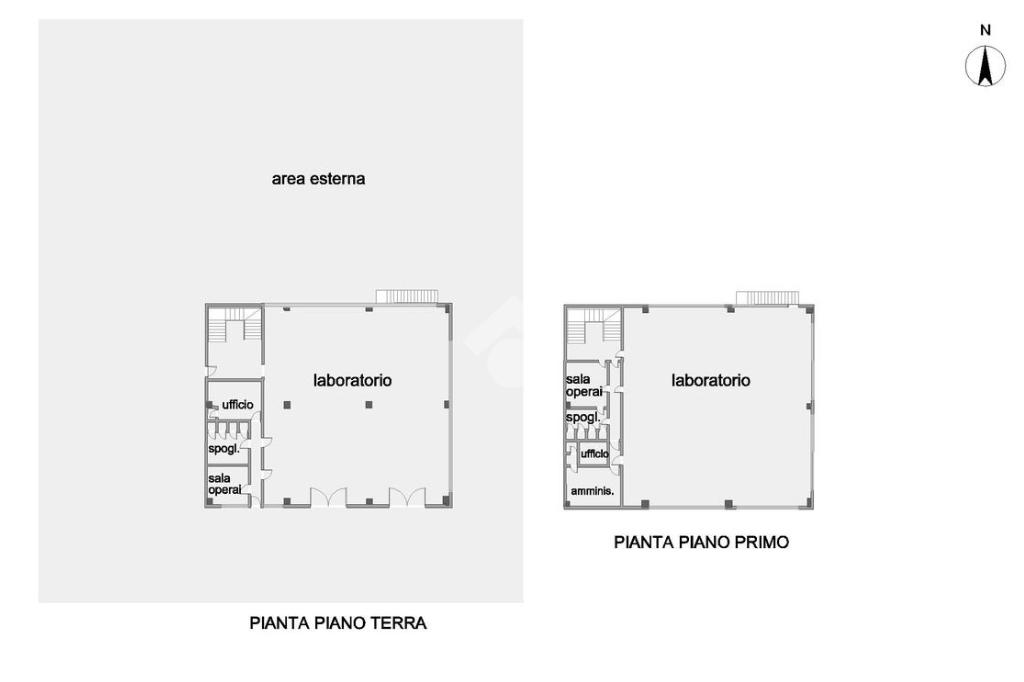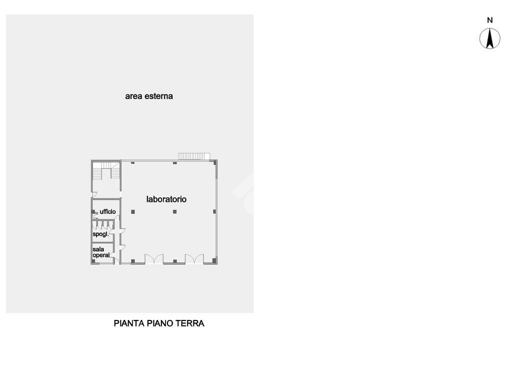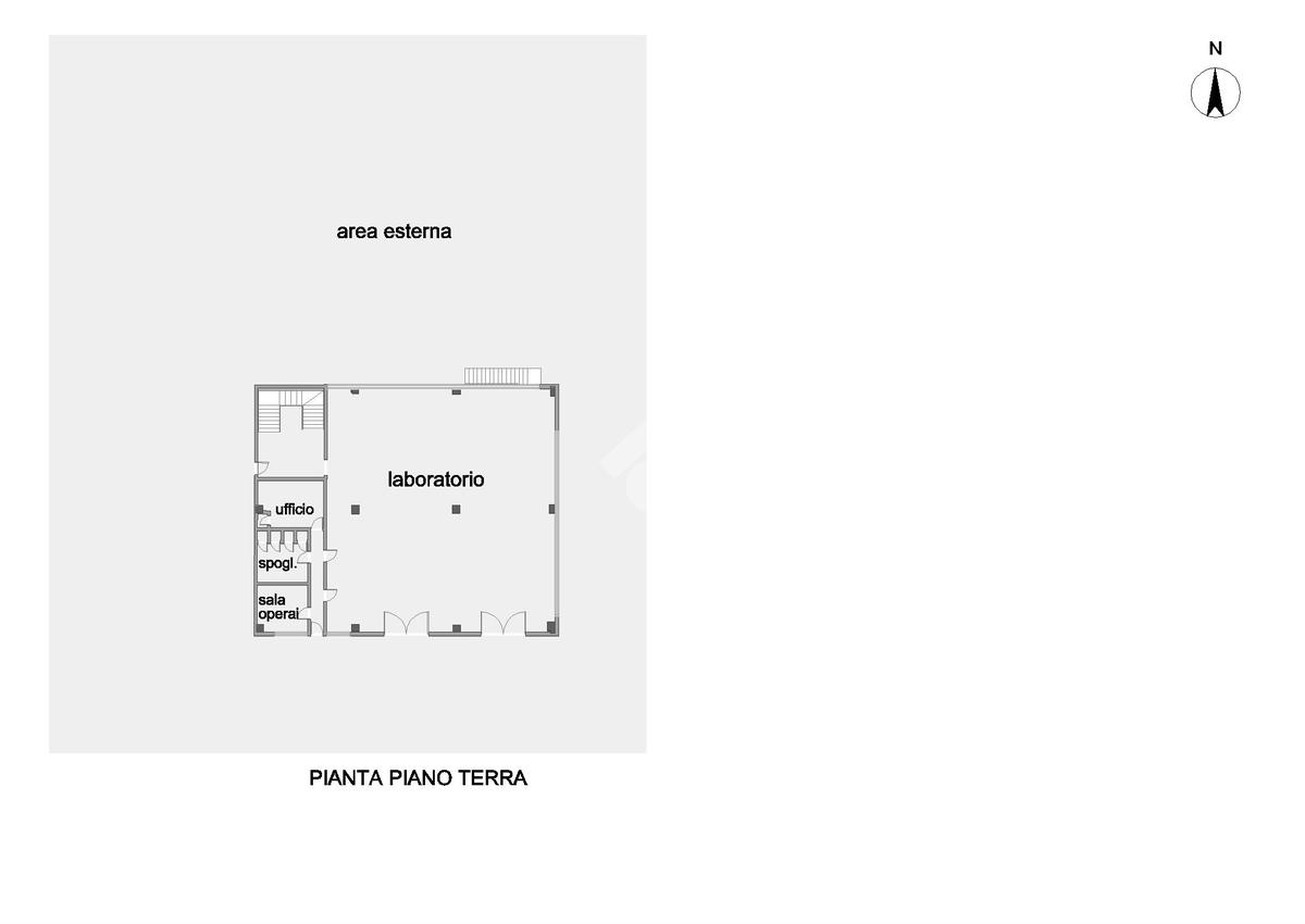 All’esterno, una centrale termica autonoma assicura l’efficienza energetica dell’edificio, mentre l’ampio piazzale recintato offre spazi di manovra e stazionamento.