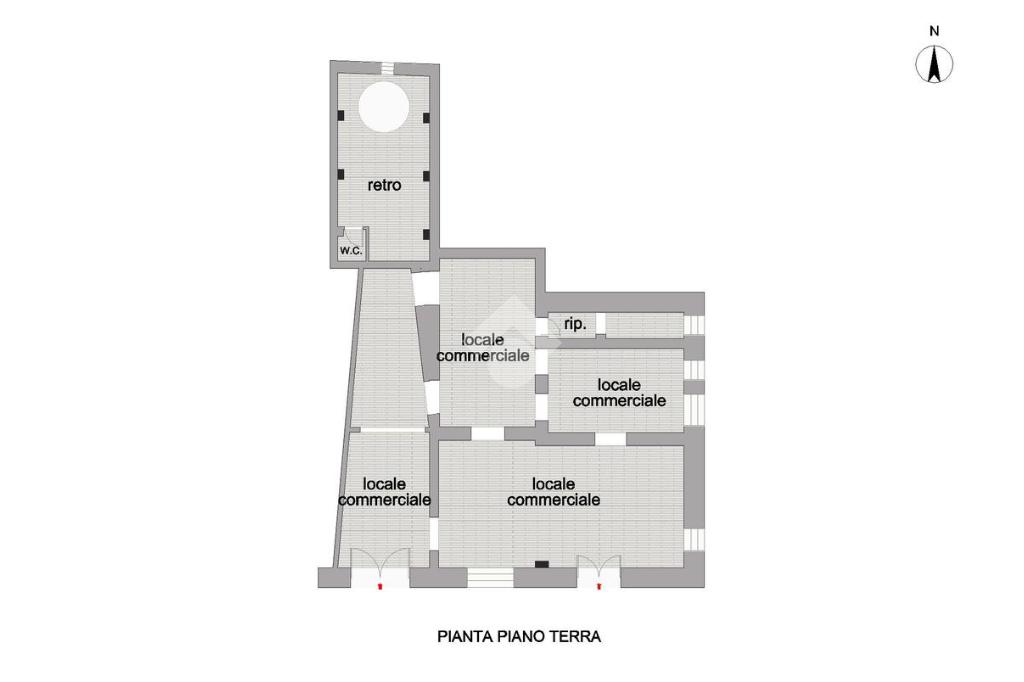 Nella parte retrostante è presente l’area di servizio con bagno e ripostiglio; da qui, tramite una scala interna, si accede ad un ulteriore locale al piano sottostrada, ideale come magazzino o deposito per la merce. L’immobile dispone inoltre della predisposizione per la realizzazione di un secondo bagno.