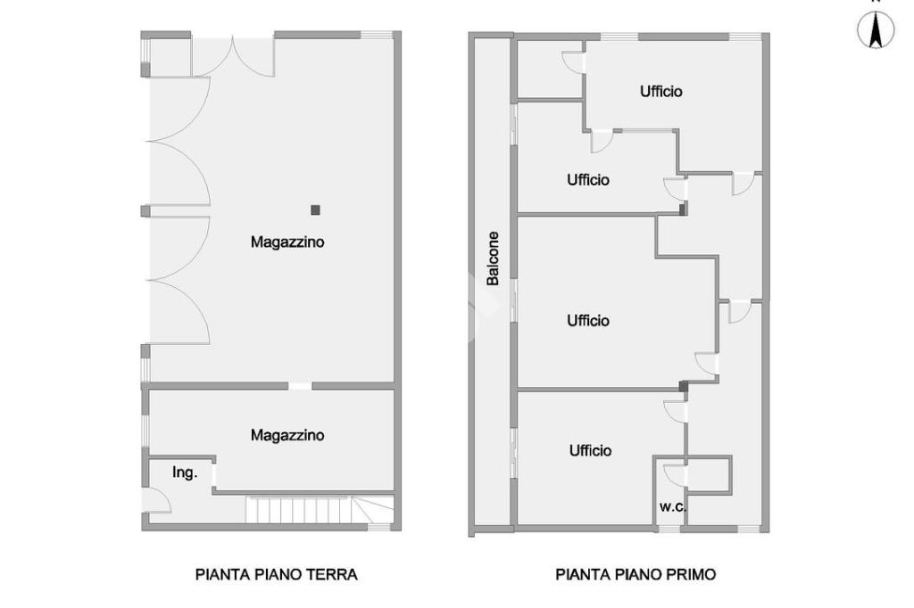 Il piano primo è dedicato alla zona uffici, ampia, luminosa e ben organizzata. È composta da quattro uffici separati, che garantiscono riservatezza e funzionalità, da una zona archivio e da servizi igienici.
