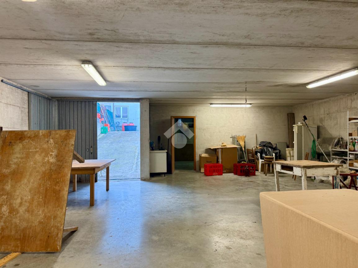A completamento della proprietà, autorimessa di circa 123 mq al piano seminterrato, comoda e facilmente accessibile, adatta al ricovero di veicoli, mezzi aziendali o come ulteriore spazio di deposito.