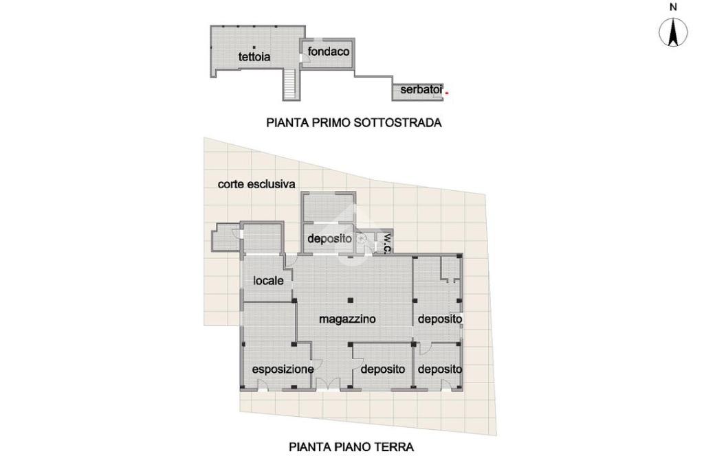 L’immobile si sviluppa principalmente al piano terra ed è composto da un ampio magazzino centrale attorno al quale si distribuiscono diversi locali ad uso deposito, un locale destinato ad esposizione, un ulteriore locale di servizio e un bagno. La disposizione degli spazi rende la struttura funzionale e versatile, permettendo di organizzare facilmente sia attività operative che aree di stoccaggio o esposizione.
