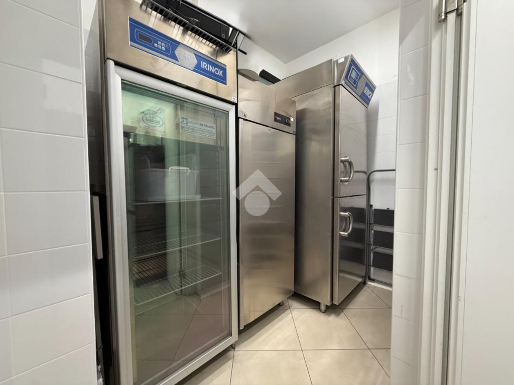 A supporto dell’attività è presente un magazzino attrezzato con frigovetrina IRINOX N’ICE da 800 litri, frigo armadiato KIPRO da 800 litri e conservatore verticale IRINOX CP da 1800 litri. È inoltre disponibile un pratico box ripostiglio.
