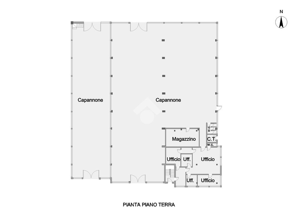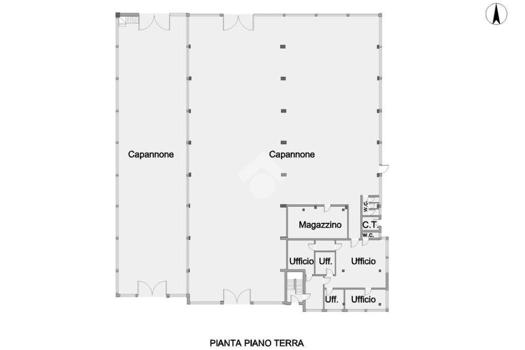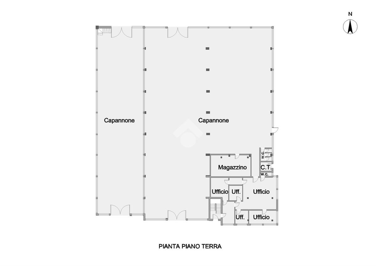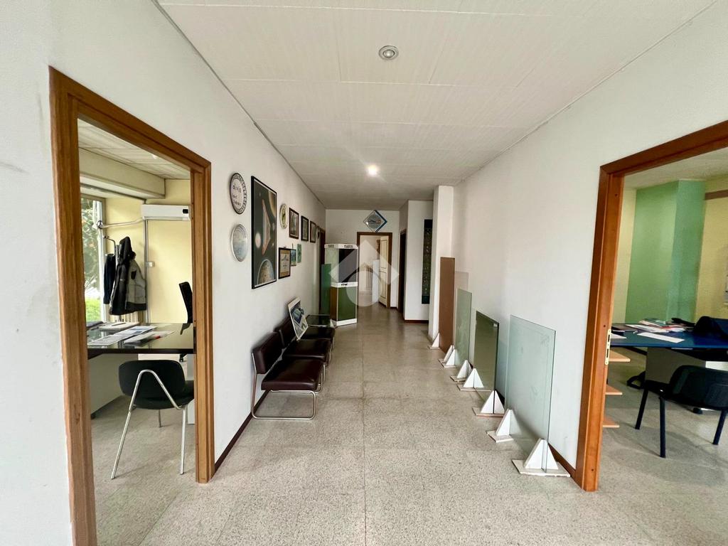 A supporto della zona operativa troviamo una area uffici al piano terra di 150 mq, razionalmente distribuita in cinque uffici indipendenti, oltre bagno. Gli ambienti, ben separati e luminosi, offrono uno spazio ideale per la gestione amministrativa, commerciale e direzionale dell’azienda, mantenendo una netta distinzione tra area produttiva e direzione.