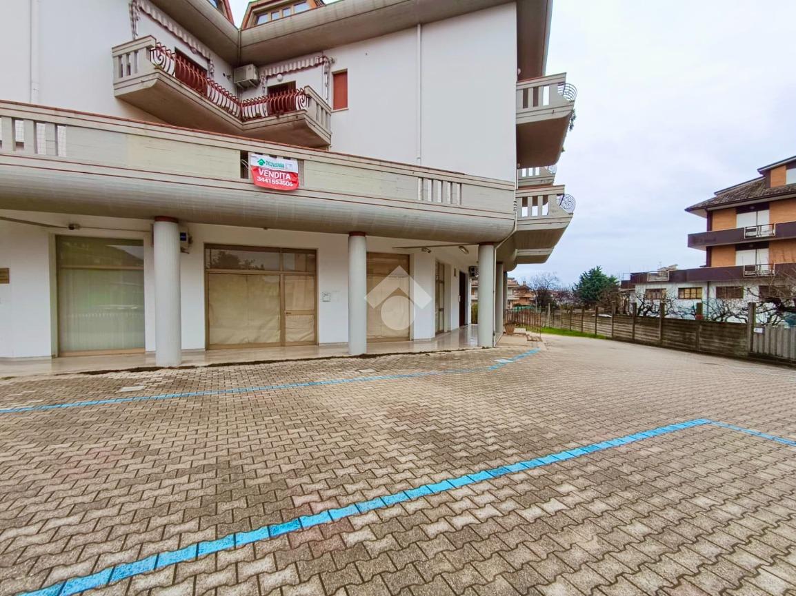 Il locale commerciale, di 87 mq, si distingue per la visibilità grazie alle quattro vetrine, che garantiscono luminosità e un forte impatto commerciale. Gli ambienti interni, ben distribuiti, offrono spazi funzionali e facilmente personalizzabili, completati da servizio igienico. A valorizzare ulteriormente l’immobile contribuiscono il portico coperto di 36 mq e l’ampia corte esterna pavimentata di circa 130 mq, ideale come parcheggio riservato alla clientela, elemento di grande pregio e rarità.