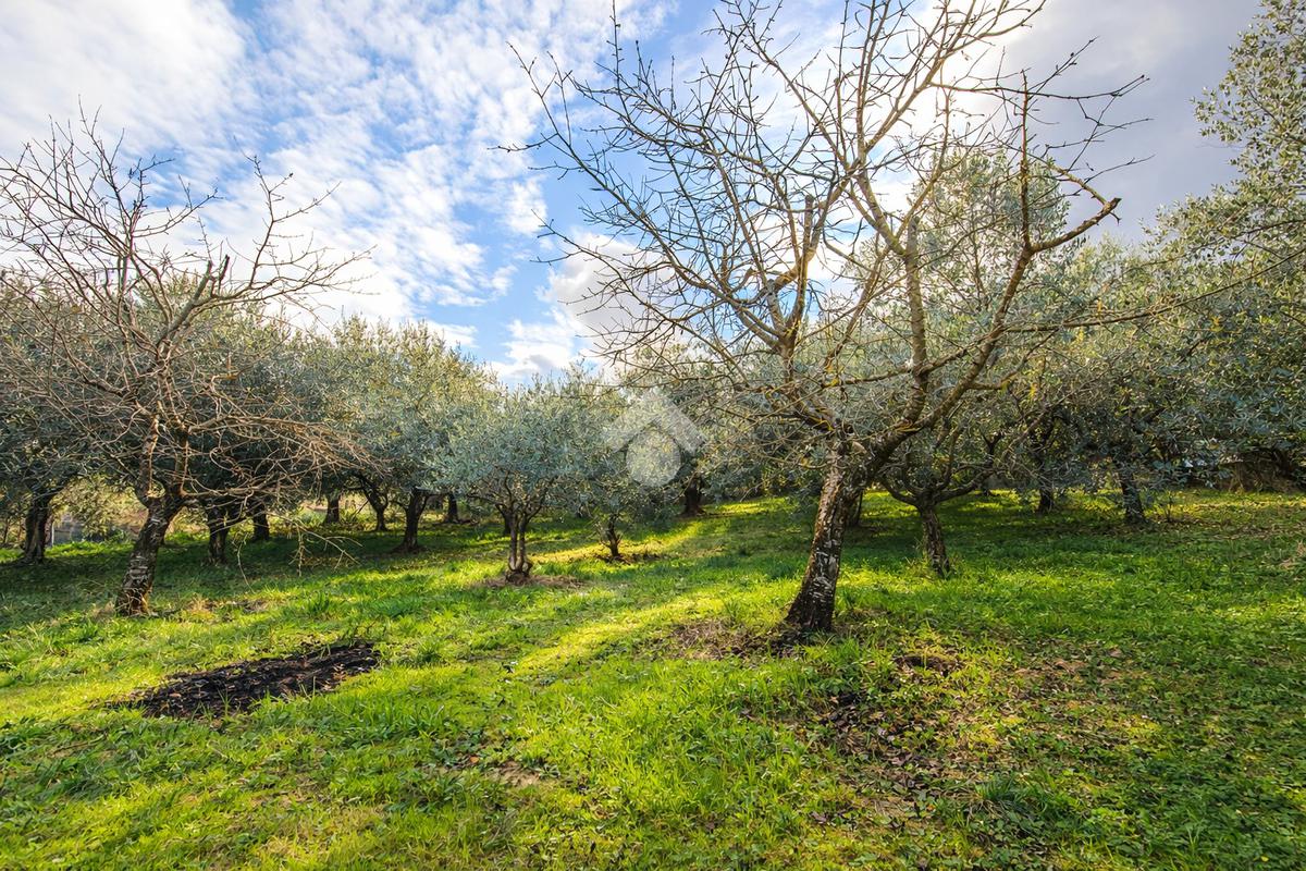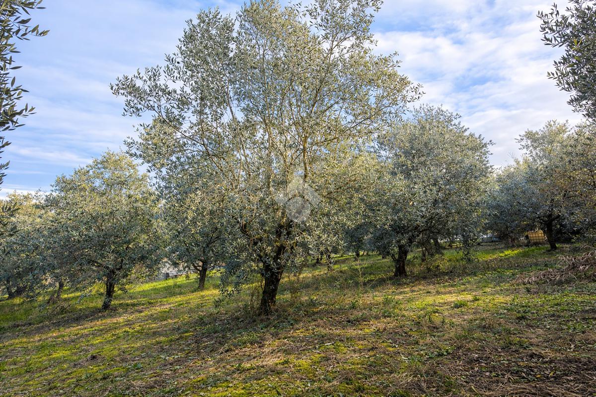 Il terreno è ben esposto e facilmente accessibile, con andamento leggermente collinare, e ospita 14 piante di ulivo, che garantiscono una produzione familiare di olio e valorizzano ulteriormente la proprietà.